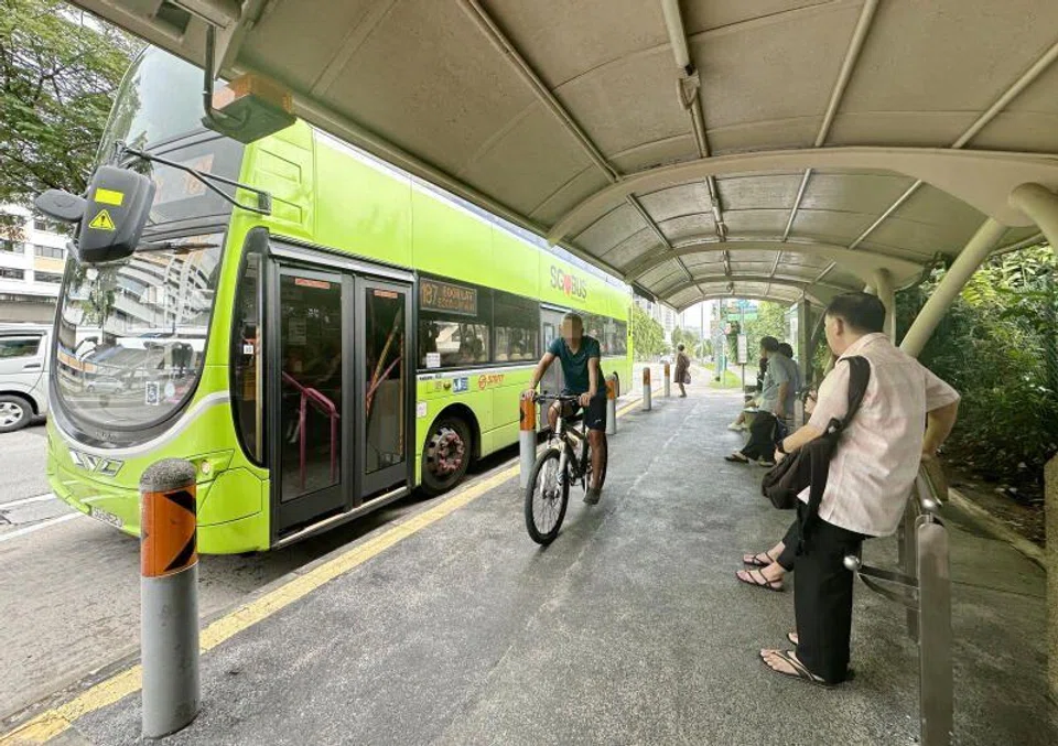 A Shin Min reporter visited two bus stops near Phoenix LRT on the morning of Dec 24 and found at least five cyclists riding near one of them.