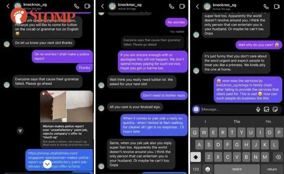 Last year, Stomp received three complaints about Knoc Knoc involving rude messages and unsatisfactory paint jobs.