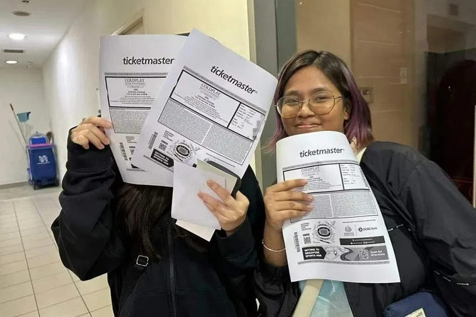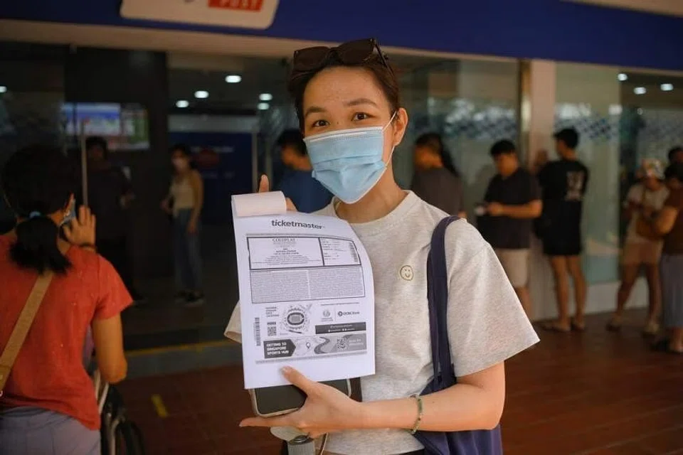 Fans lined up at SingPost outlets islandwide on Tuesday morning to queue for tickets to Coldplay's concert tickets after pre-sales on Monday sold out within five hours, with more than a million virtual queue numbers issued.