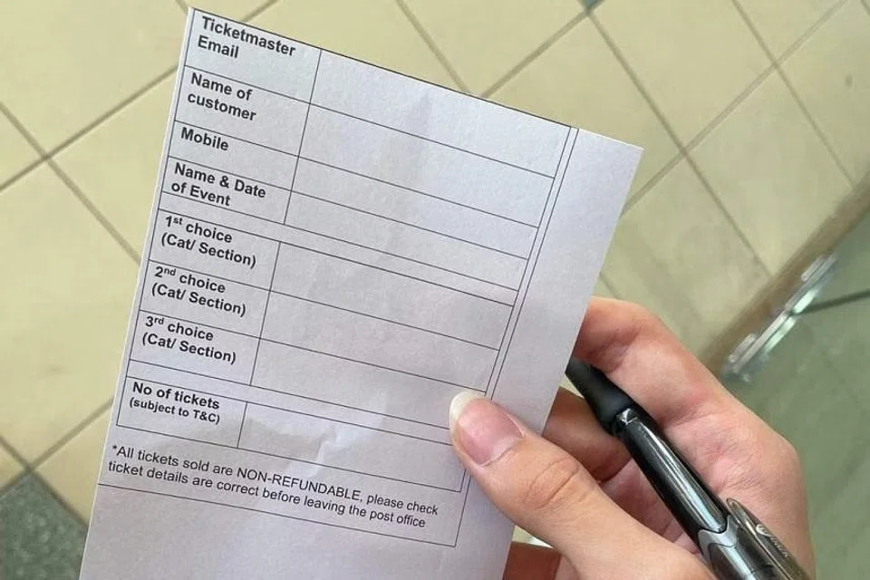 Those in line at some SingPost outlets received forms allowing them to fill out their personal details, how many tickets they would be purchasing and to rank their preferred categories.