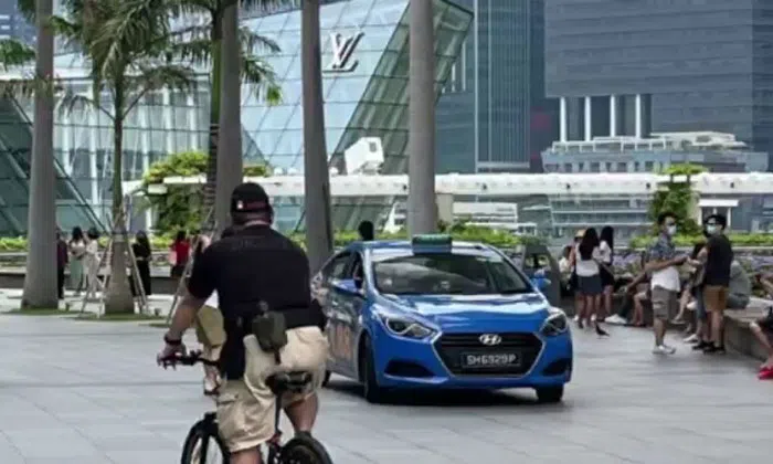 ComfortDelGro cabby given warning after driving taxi on MBS pedestrian walkway, police investigating