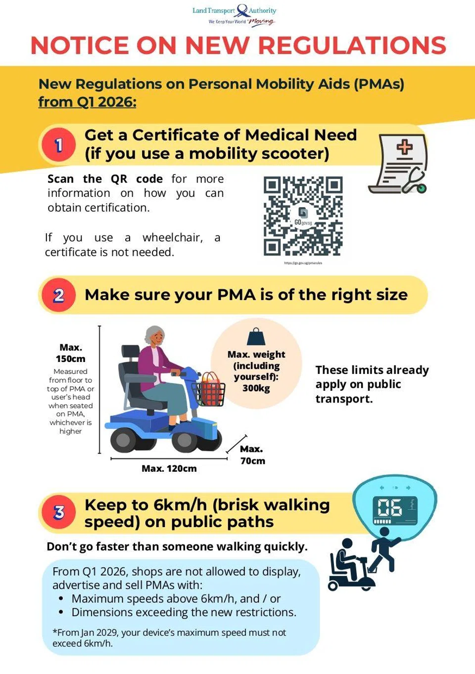 On enforcement, the Land Transport Authority noted that the Government will maintain a registry of those certified to use a mobility scooter.