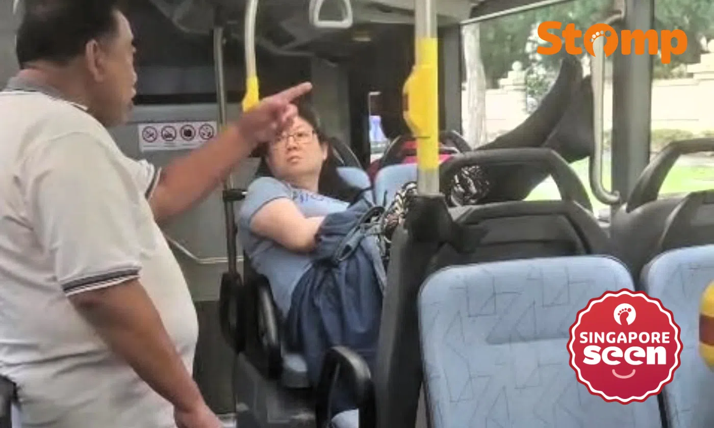 Man confronts woman for propping her feet up on bus, she retorts: 'No money lah you! No father mother!'
