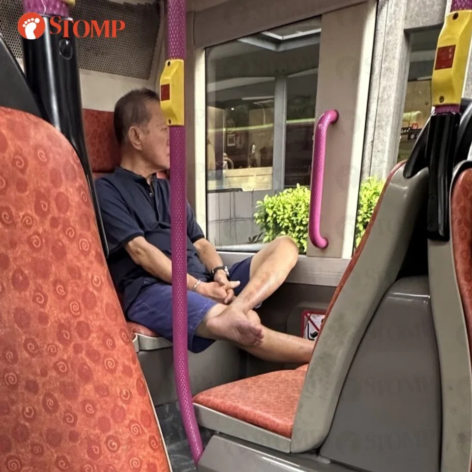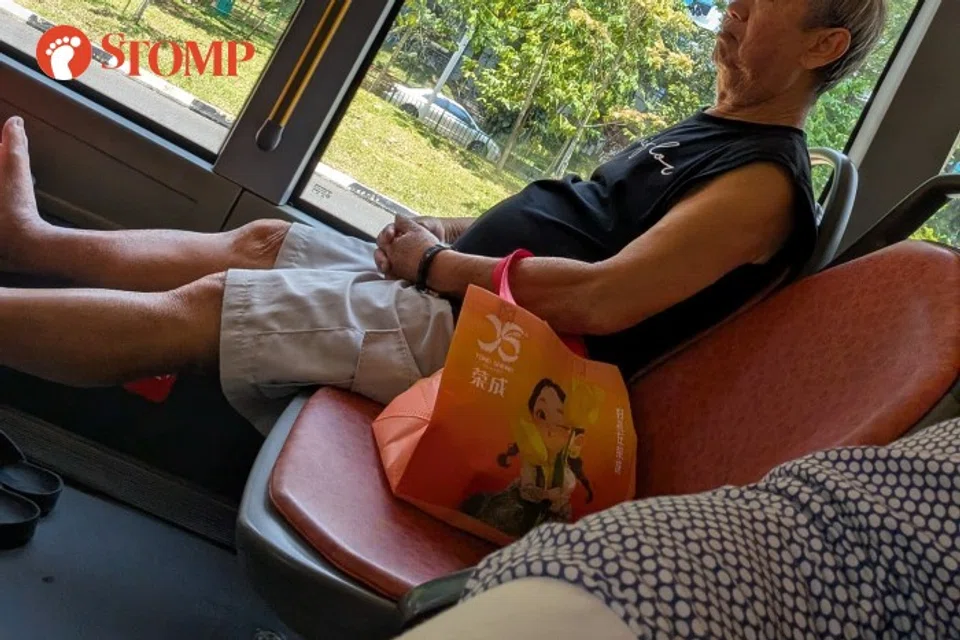 Sharing a photo of another male passenger on bus service 158, Stomper Margaret said: "I saw this inconsiderate man not only left his bag on the seat opposite him, but he also rested his feet with his shoes on the seat as well.