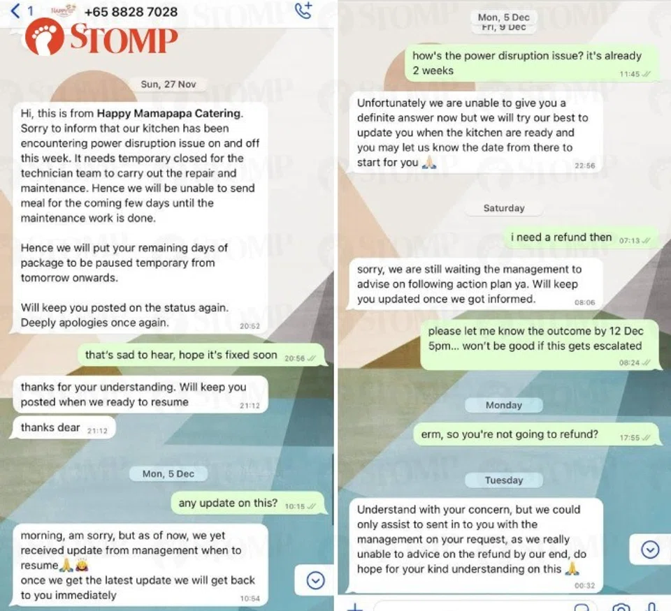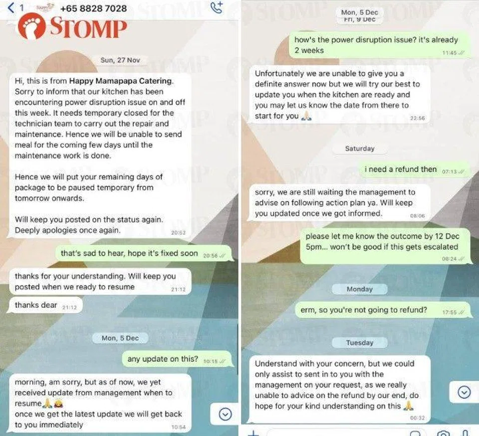 Stomper Jerry said he placed an order for a seven-day trial package with Happy MamaPapa Catering on Nov 21.