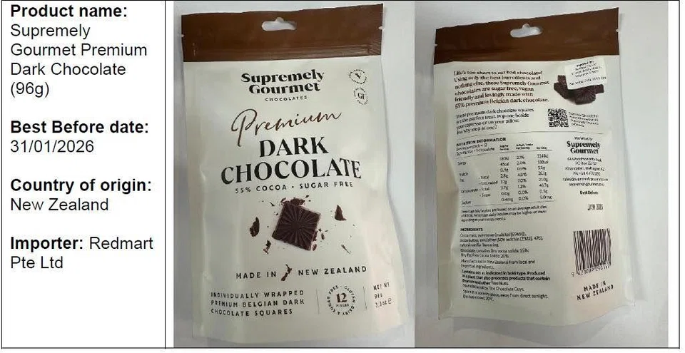 Two days earlier, the agency said it detected undeclared milk in Supremely Gourmet Premium Dark Chocolate (96g) and directed the importer, Redmart, to recall the implicated product.