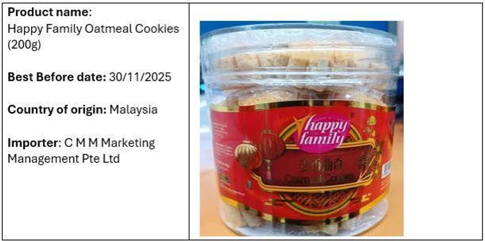SFA said on March 1 that it detected undeclared milk in Happy Family Oatmeal Cookies (200g) and directed the importer, C M M Marketing Management to recall the implicated product.