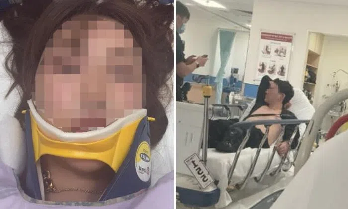 "I tried to stop them, but the other man, dressed in black, suddenly turned around, pulled my hair, and started beating me," Ms Ng said.