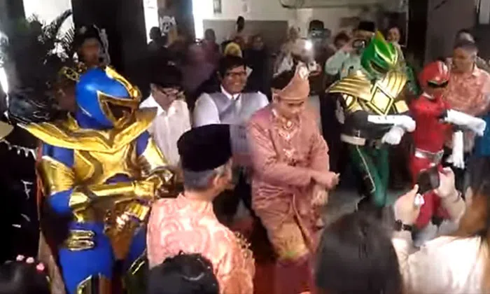 Couple's Power Ranger entourage at Malay wedding is really quite power