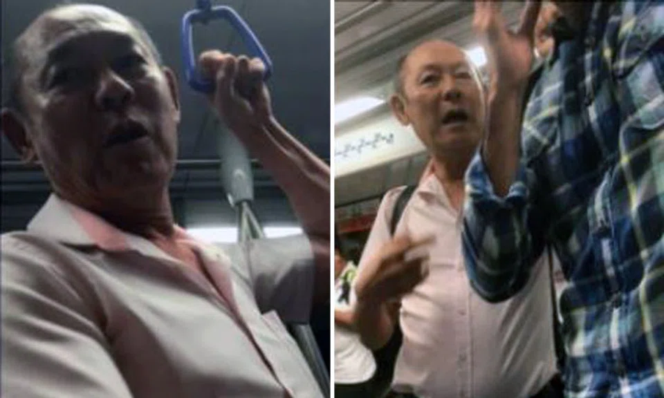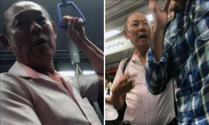 A 70-year-old man who shouted at and slapped a guy on a train has been arrested for causing public nuisance and voluntarily causing hurt.