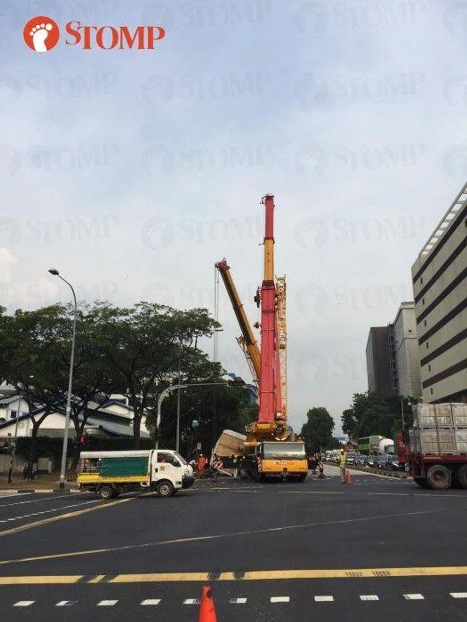 "The machine toppled onto the road, causing moderate traffic in the area," said Ian, who told Stomp he saw police and an ambulance on site.