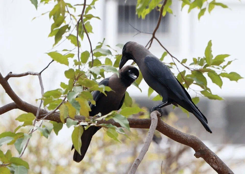 Two crows were also seen perched on tree branches nearby, cawing at pedestrians and staring at them as they walked past.