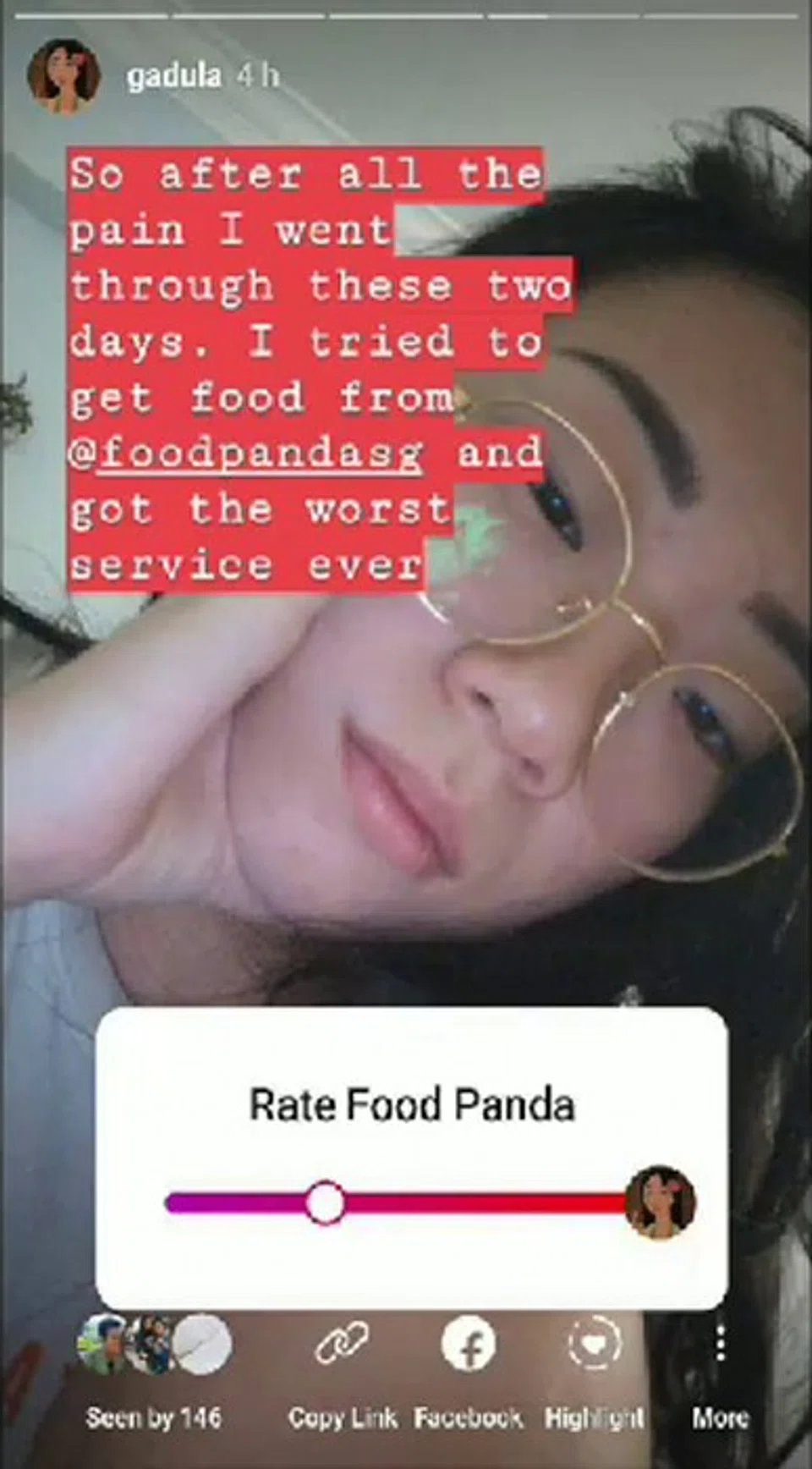 Feeling frustrated, she said she posted an Instagram story to see if other people have had similar experiences. She tagged Foodpanda's Instagram handle in the post.