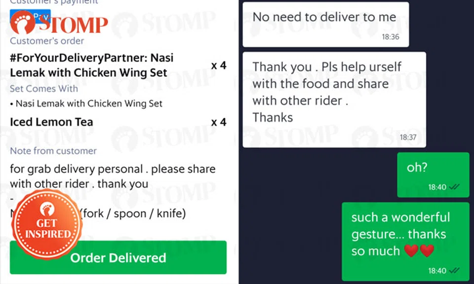 "Upon collection of the food, the customer indicated that there was no need to deliver as her intention was to treat the GrabFood personnel and others," she said.