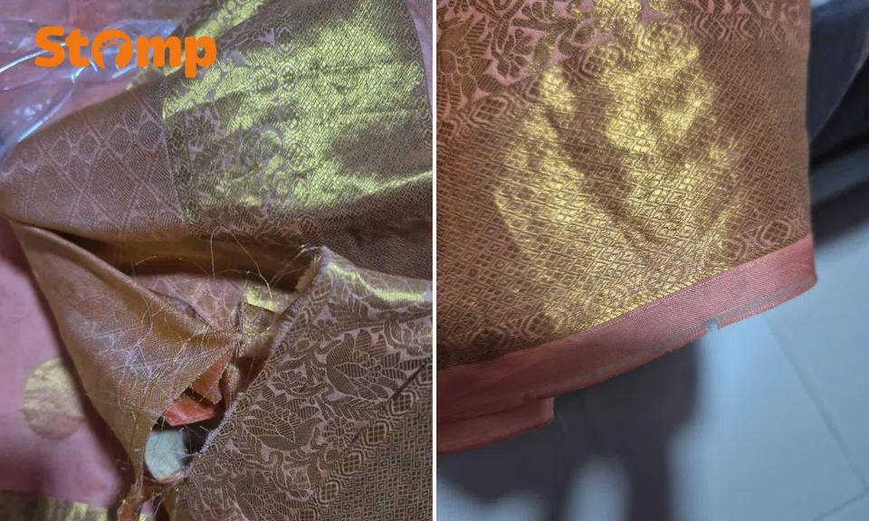 Stomper P had sent two saris for dry cleaning at Peter Laundry Services in Bukit Batok on Dec 4, 2025. One was a pink sari she wore for her wedding, which she said she bought in 2023. The other was worn for her housewarming.