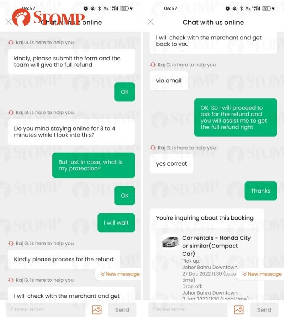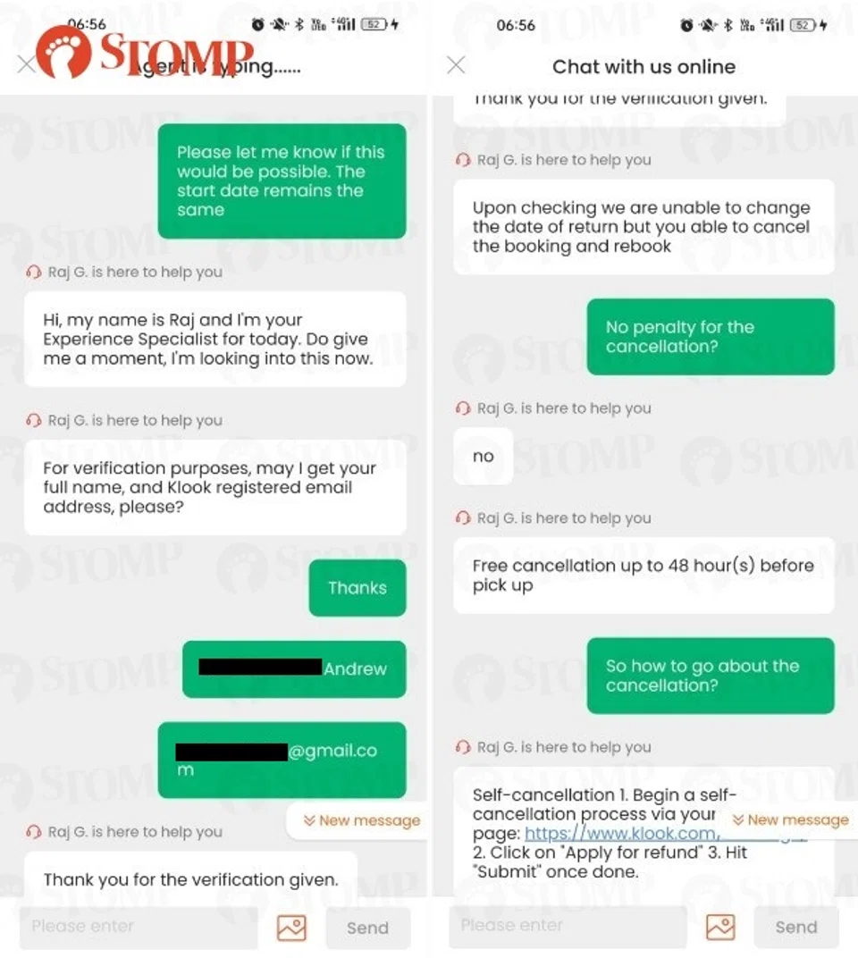 He told Stomp: "I did not start the conversation with Klook with the intention to cancel the order but rather to alter the end date. But upon their advice, I ended up with costs that is more than the rental fee and one day less for the use of the car."