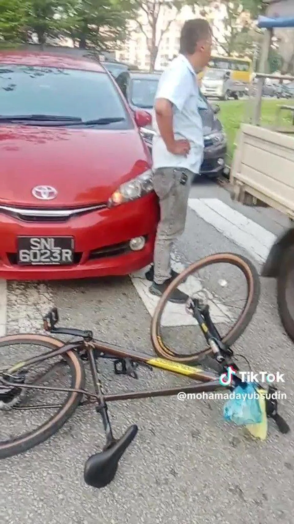 "You langgar (collide into) me? I go police station now," said the cyclist and repeatedly told the driver to follow him to the police station, but the driver just stood there, barely saying anything.