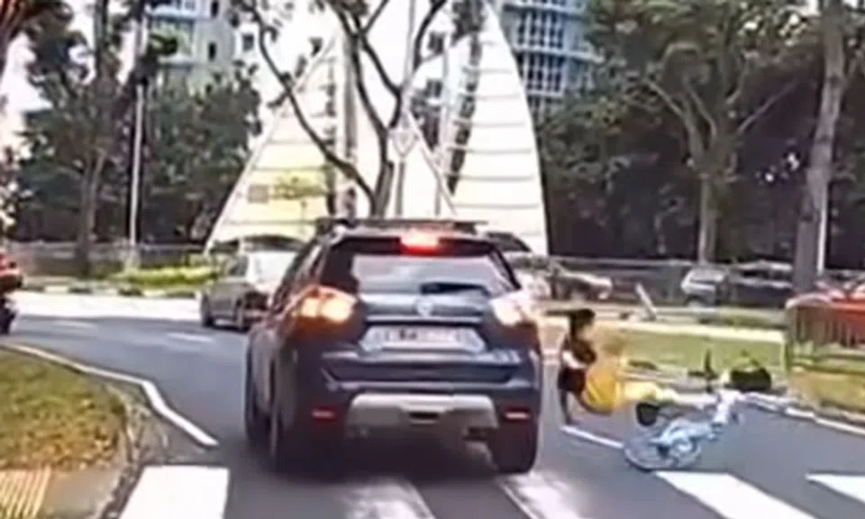 Cyclist and his handphone sent flying after car fails to stop at zebra crossing