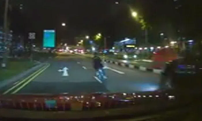 A young cyclist almost got into an accident with a car at 10.36pm on July 31, by swerving left and right in the middle of a road in Woodlands.