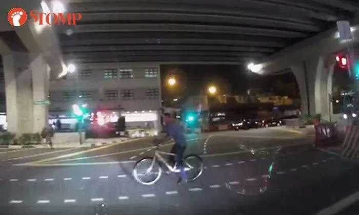 A cyclist nearly met with an accident as he was taking his time to cross Cantonment Road on Tuesday evening (Aug 20).