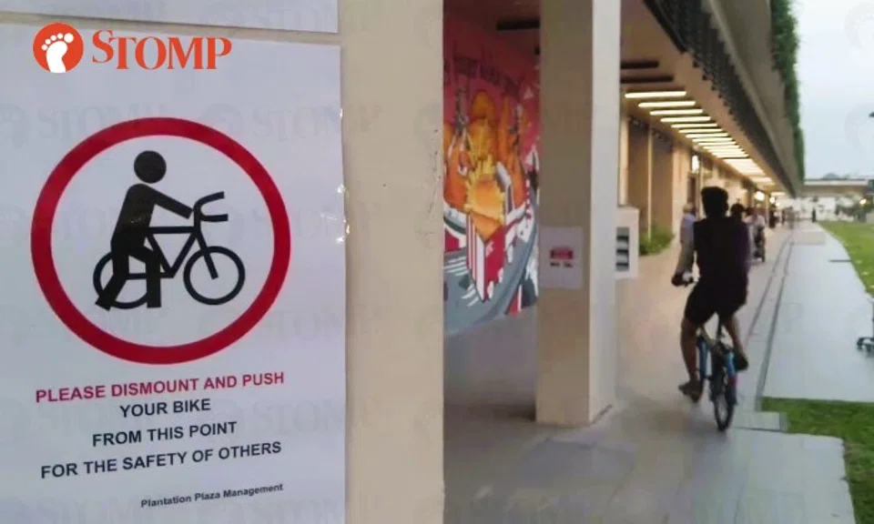 Cyclists riding on pedestrian walkway outside Plantation Plaza pose safety risks to public: Stomper