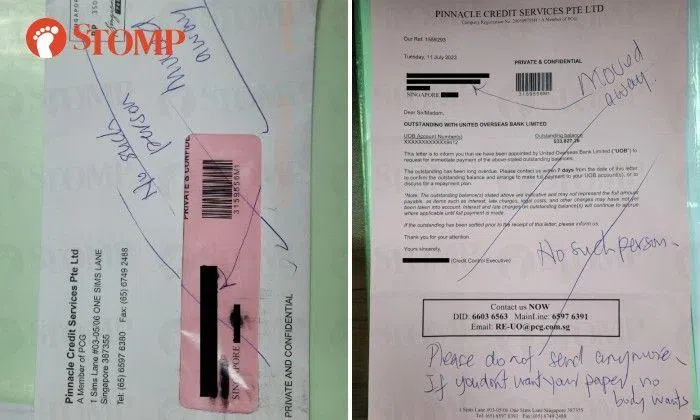 Debt collector keeps sending letters to same address on UOB's behalf even after debtor moved out