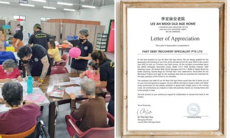 But for residents of Lee Ah Mooi Old Age Home and Block 25 Hougang Avenue 3 on Jan 11, the visit from the debt collectors of Fast Debt Recovery Specialist was a happy occasion.