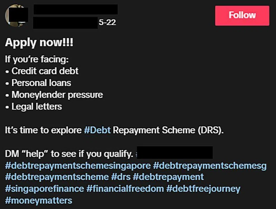 CCS general manager Tan Huey Min said it had a debtor who approached the organisation after he paid a consultancy firm in hopes of getting on the DRS.