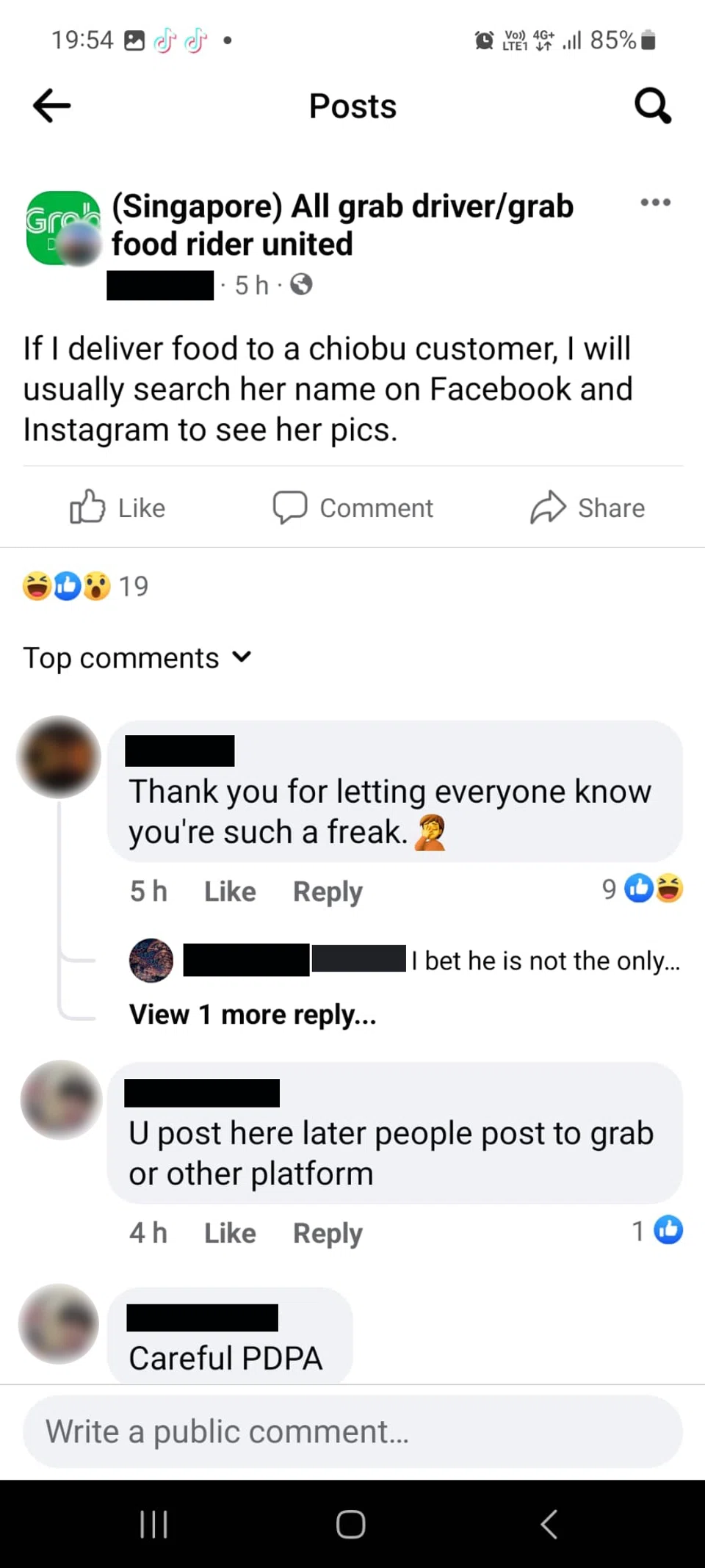 The man, surnamed Tan, had written: "If I deliver food to a chiobu customer, I will usually search her name on Facebook and instagam to see her pics."