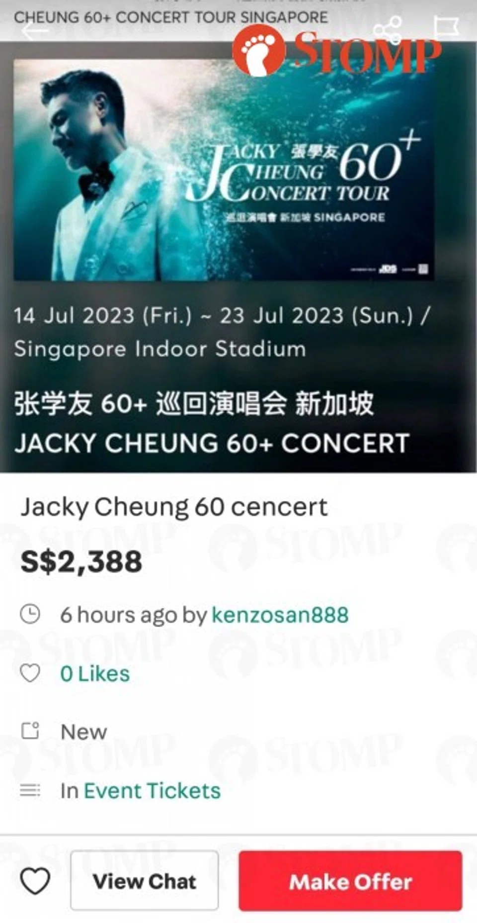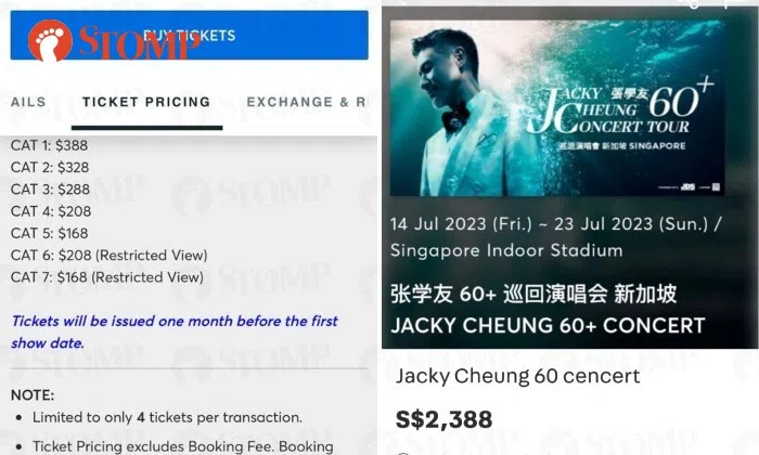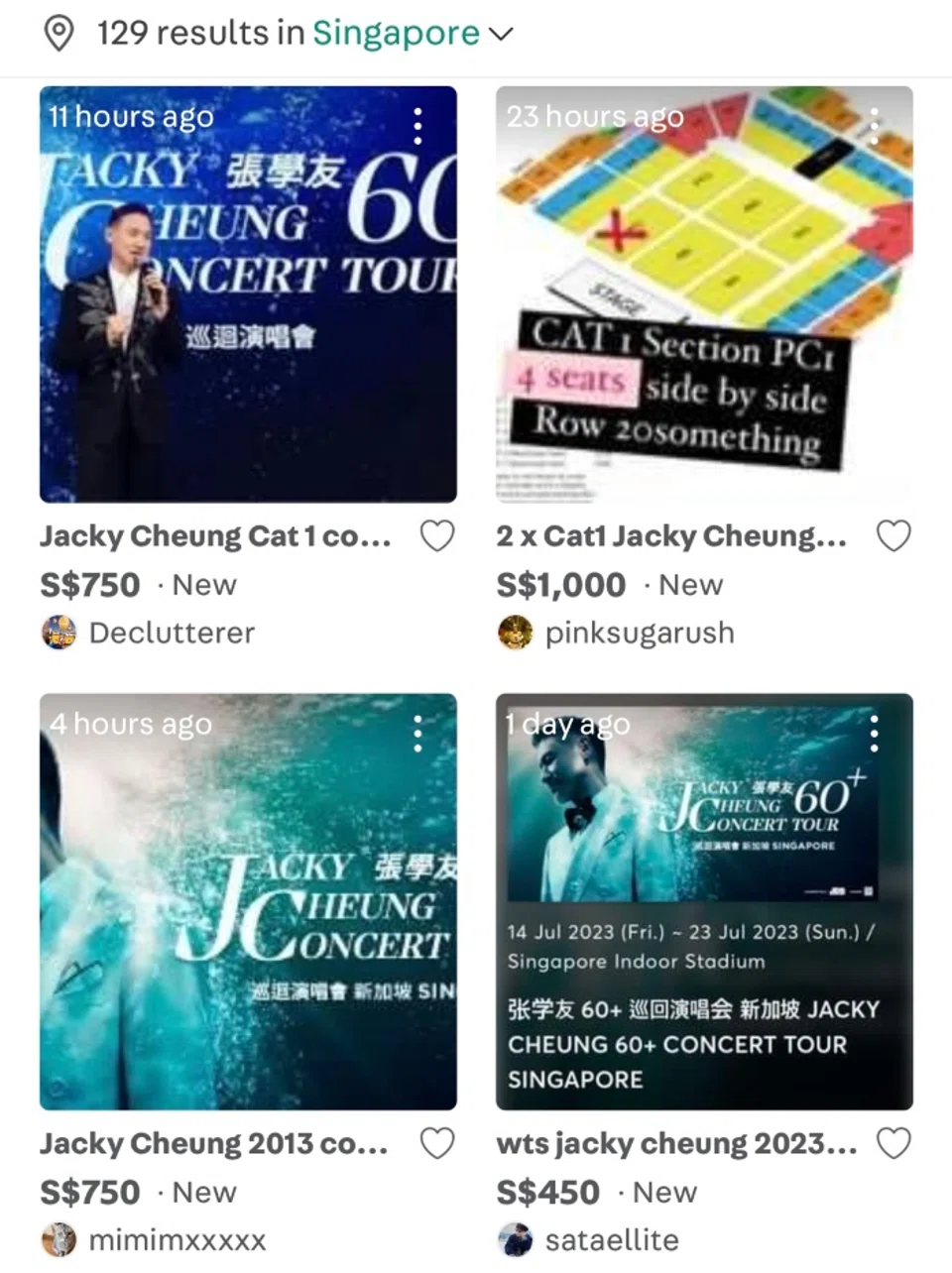 Stomper Francis said: "Within four hours, tickets for the upcoming Jacky Cheung concert were sold out and in less than seven hours, they re-appeared on Carousell for $500 (original top price is $388)."