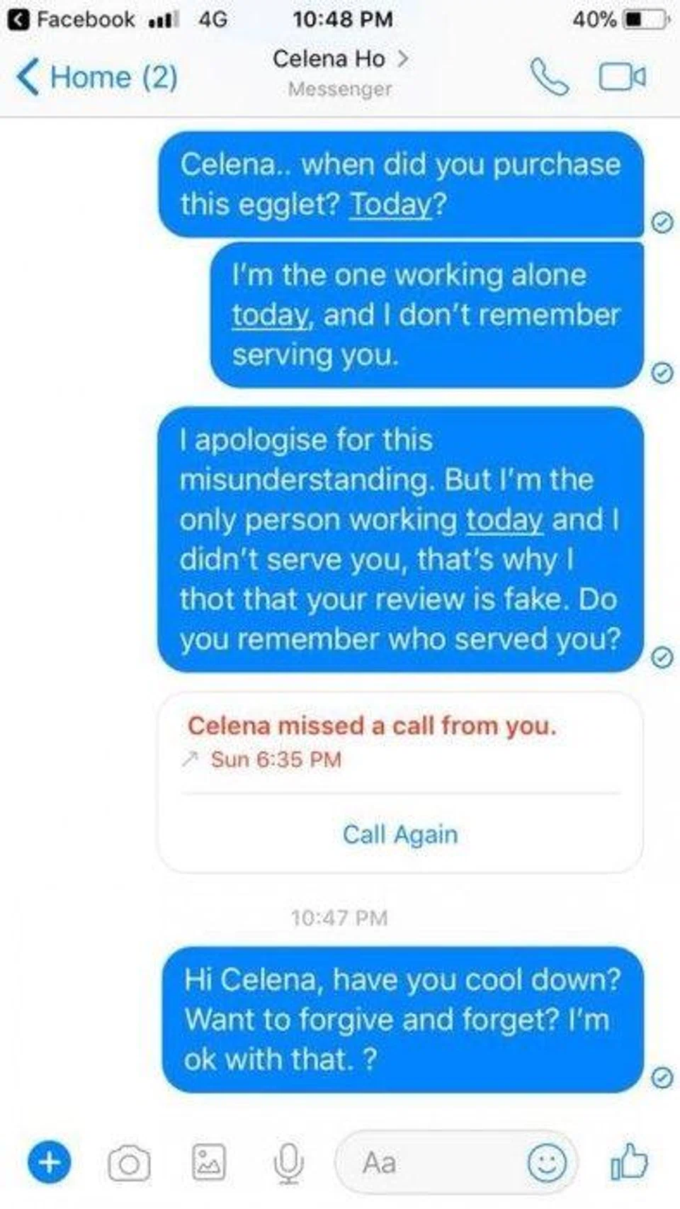Dessert shop responds to Stomp over online dispute with customer on Facebook