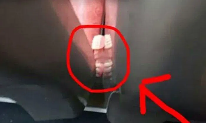 Dentures was caught in between bus seats and the moment was captured by Eugene Nakamura.