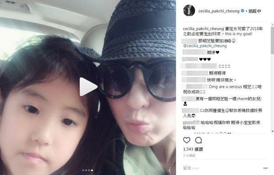 In a reply to a comment, she wrote: "I'll work hard to give birth to a daughter first." The comment was brushed off by many as a joke, especially after Cheung subsequently posted an ultrasound scan of her pregnant cat, announcing that she'd be welcoming a new family member soon.