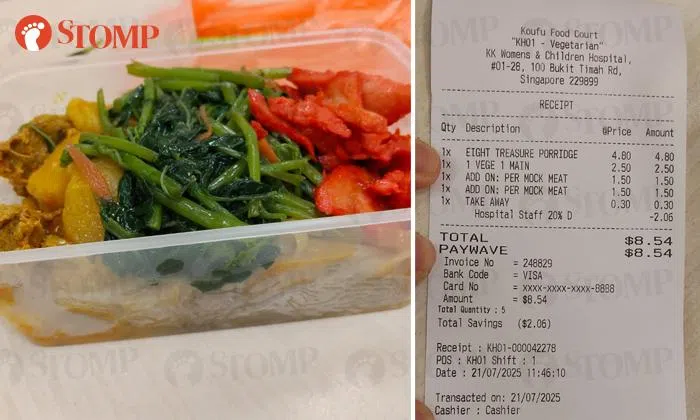 A diner was baffled to be charged $8.54 for a vegetarian meal at Koufu food court at KK Women's and Children's Hospital on July 21.