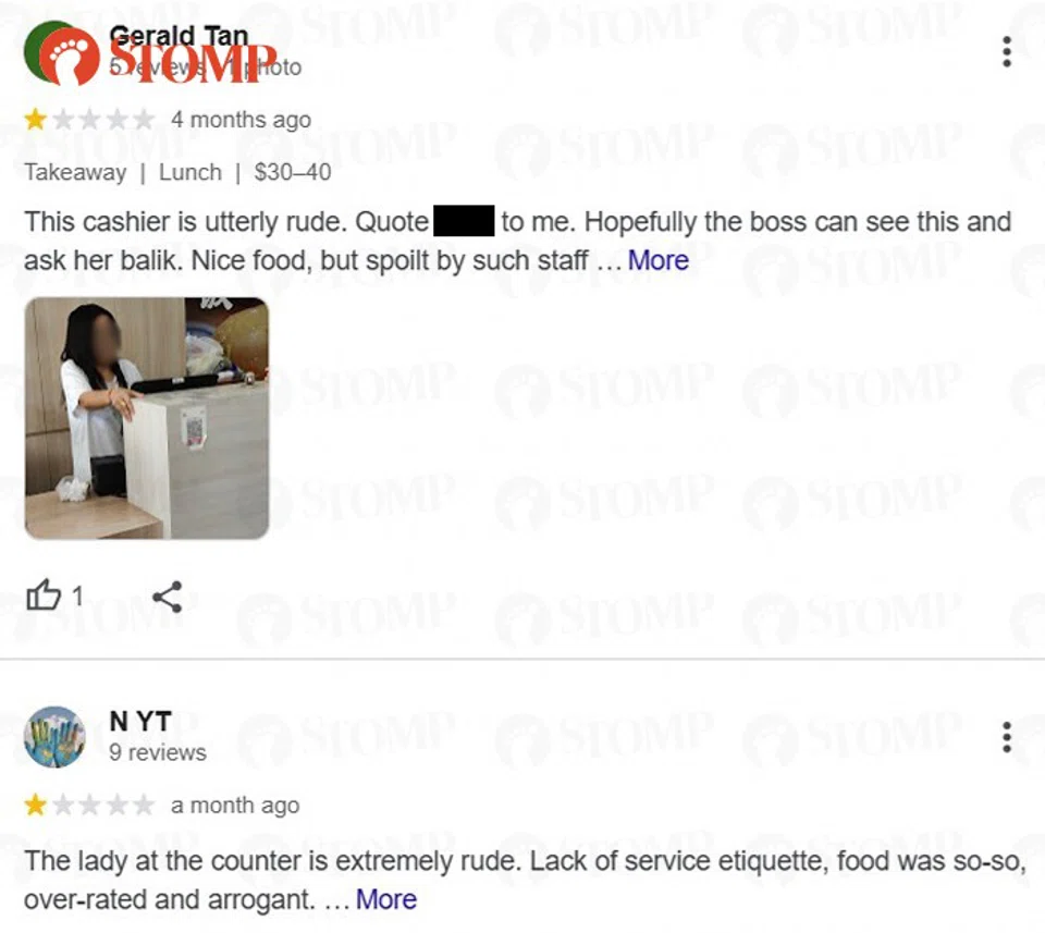 "At first, I thought that maybe she was just having a bad day. But upon looking up Google reviews, I discovered that at least 50 other customers had complained about similar rude, abusive, and arrogant behaviour exhibited by the plump, short-haired and bespectacled counter aunty, lending credibility to what I observed.