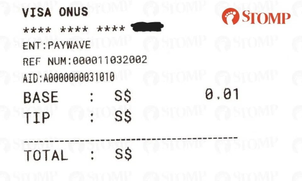 The Stomper shared a photo of the UOB credit card receipt showing the $0.01 transaction.