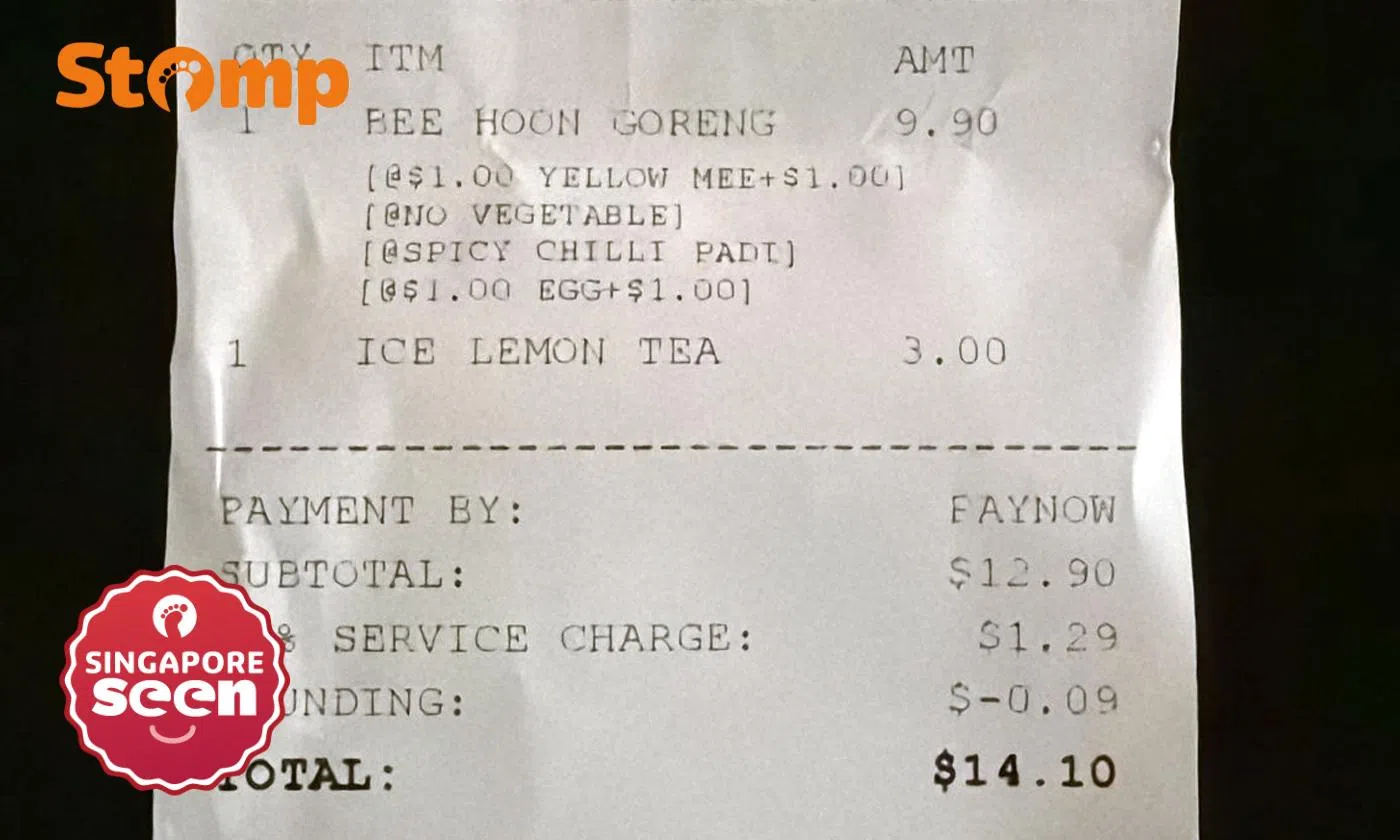 "I did not take any photos of my food as it was only after I had my meal then I realised that the price was off," he told Stomp. "I clarified with the server and he showed me the receipt."