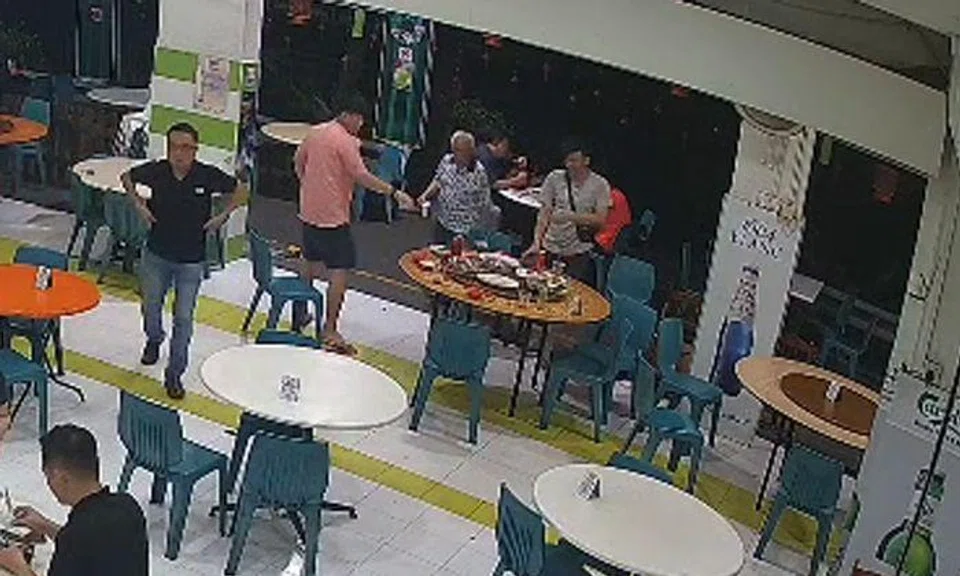 In CCTV footage shared with Stomp, the diners can be seen jolting at the cockroach's appearance, with one of them getting up from his seat.