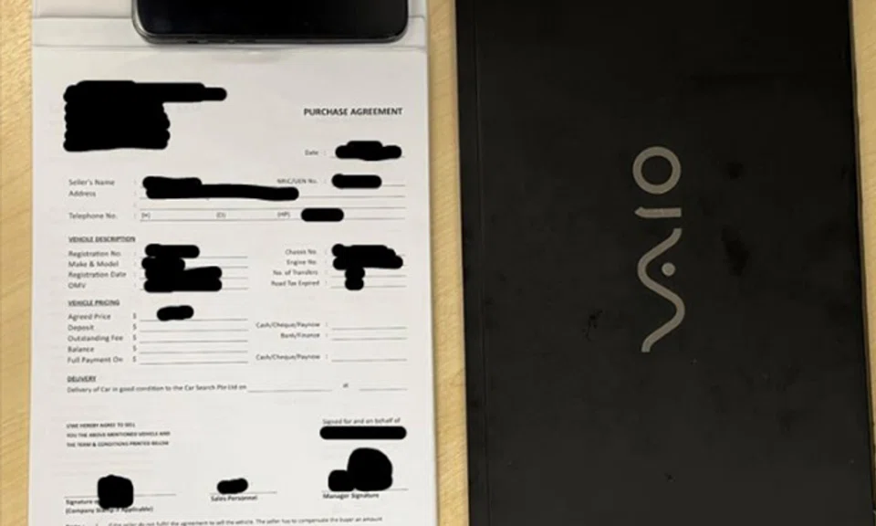 A notebook, a handphone and a stack of documents were seized as case exhibits.