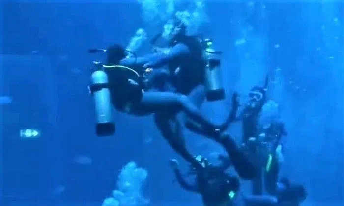 Divers 'fighting' in S.E.A. Aquarium? No, it's part of rescue diving course