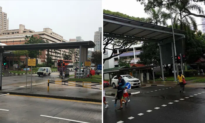 In a viral post from the Facebook page Our Singapore, a photo shows the shelter which is located next to the traffic light crossing and not directly above the traffic light crossing like most shelters are.
