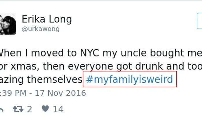 Jimmy Fallon's recent Hashtag segment -- #MyFamilyIsWeird, certainly reminds us that every family is a little whacky. This is exactly why it's scary to introduce outsiders to your folks, you fear them being weird. With this hashtag trending, it gives a sense of comfort to know that everyone else is going through the same thing as well. Does it not?