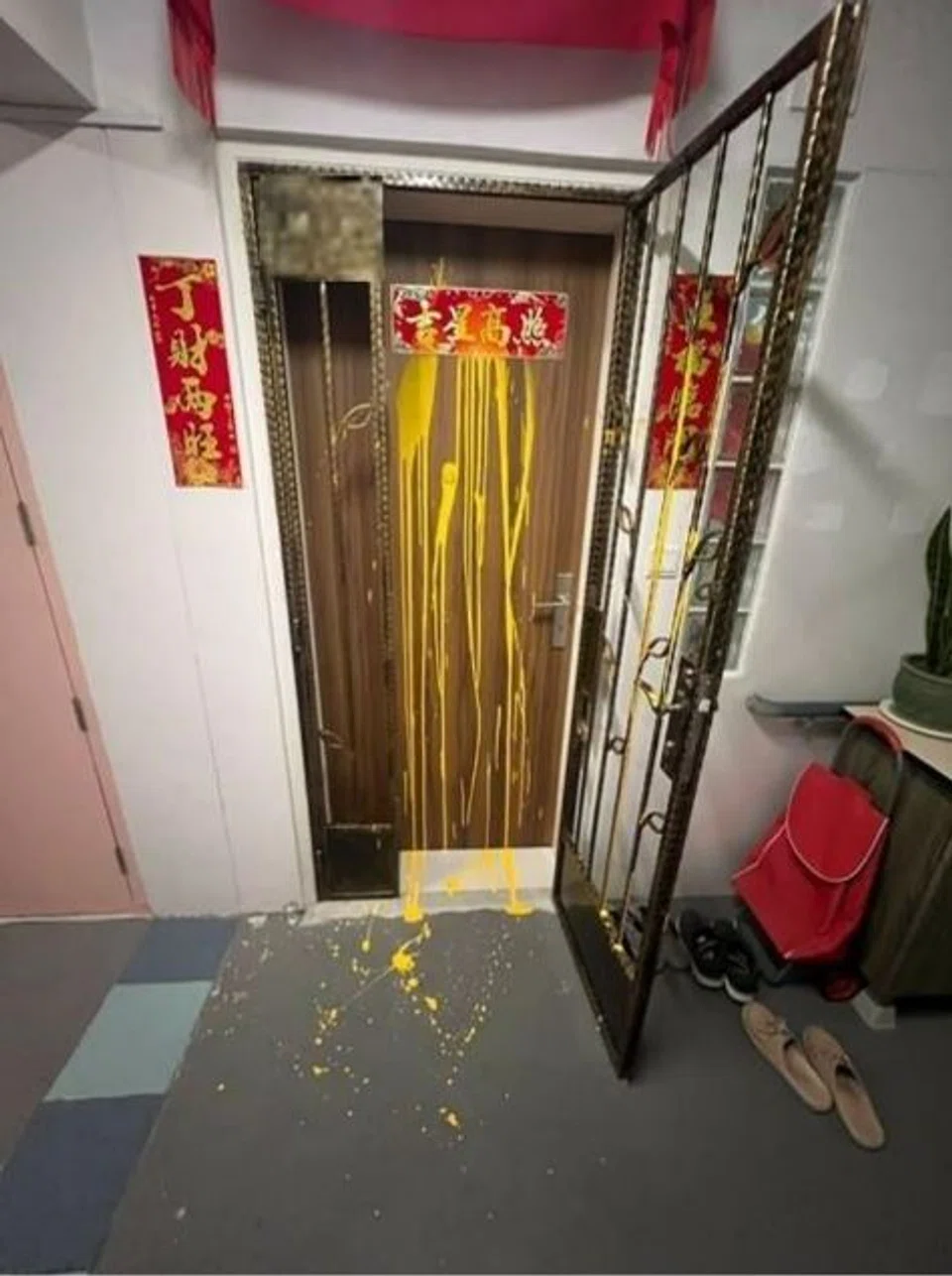 Door of Bukit Merah flat splashed with yellow paint, man arrested for loanshark harassment on same day