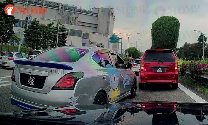 Doraemon decal, bad attitude: Driver flashes middle finger while cutting queue at Woodlands Checkpoint