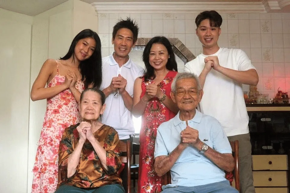 (Back row, from left) Actress Chen Yixin with her father Edmund Chen, mother Xiang Yun, brother Chen Xi and (front row) her paternal grandparents at a previous Chinese New Year gathering. PHOTO: CHEN YIXIN