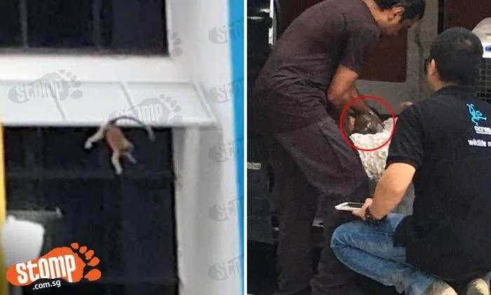 fireairsg also sent a dramatic video of the monkey taking a five-storey fall, hitting the metal shelters above the windows on the way down