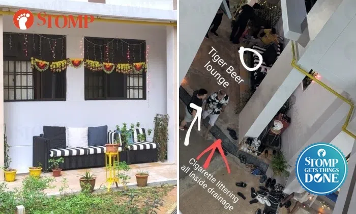 Drinkers and smokers make noise and litter in 'Tiger beer lounge' at Bukit Panjang block, sofa removed