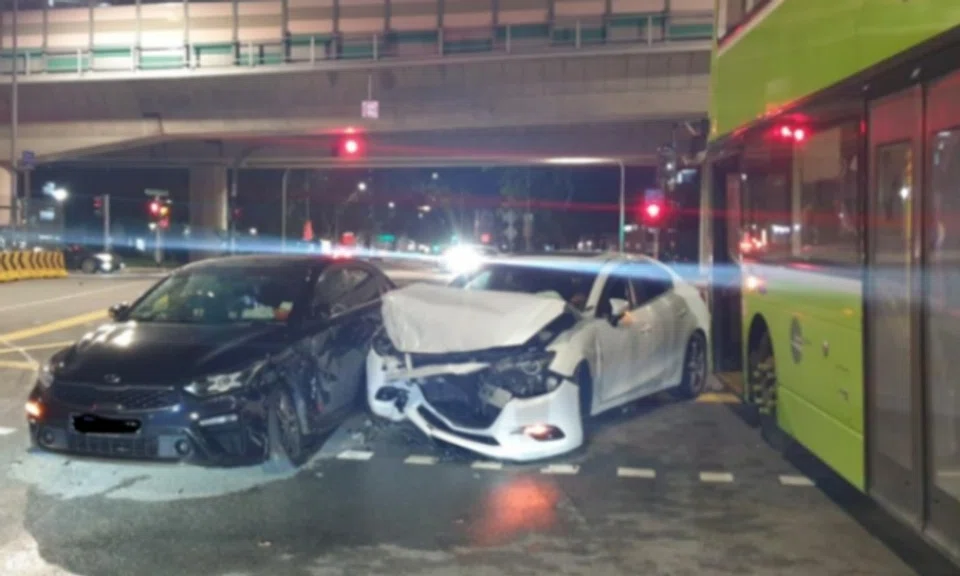 Another driver, a 43-year-old man, crashed into a car making a right turn light at the junction of Sentosa Gateway and Telok Blangah Road also on Jan 17, injuring the car passenger.