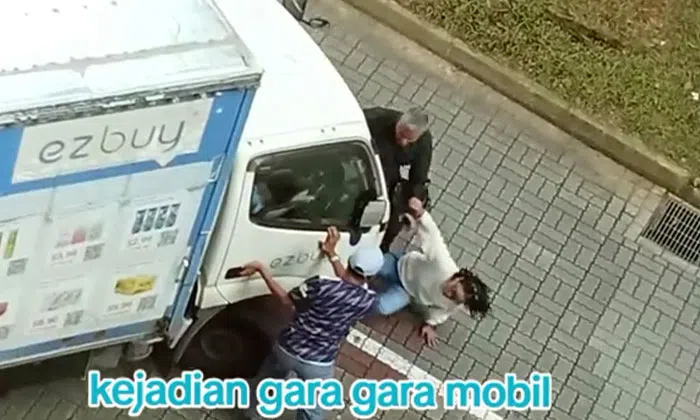 A dramatic scene unfolded in Punggol Central on April 17 when a woman fell to the ground and was nearly run over by a lorry in a dispute that reportedly began after the vehicle knocked into a motorcycle.