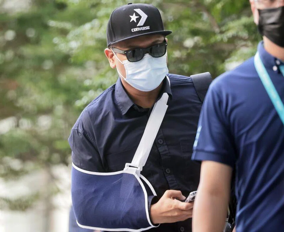 Muhammad arrived at the State Courts at around 8.30am with his arm in a sling. He was escorted by the police and Aetos officers.